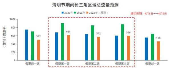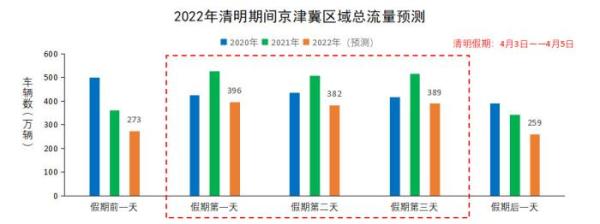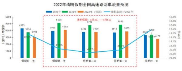 据交通运输部微信公众号消息,2022年清明假期从4月3日到4月5日,共计3天,7座以下(含7座)小型客车通行收费公路免收通行费,具体免费通行时段为4月3日(星期日)0:00到4月5日(星期二)24:00,以车辆驶离出口收费车道的时间为准。交通运输部路网监测与应急处置中心联合相关单位对2022年清明期间全国公路网运行情况进行研判分析: