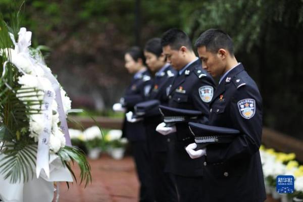 4月1日,在贵州省赤水市红军烈士陵园,民警祭奠红军烈士。 清明将至,人们来到烈士陵园,或通过英烈网,祭奠和缅怀先烈。 新华社发(王长育摄)