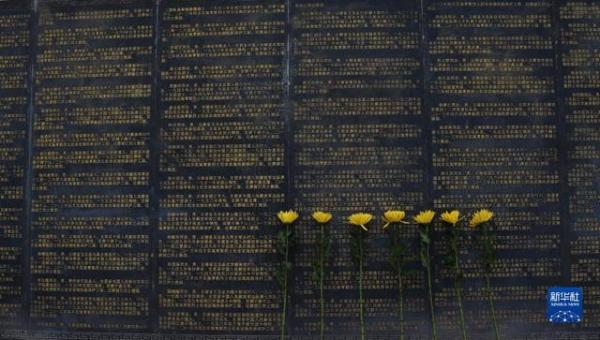 4月1日,学生在贵州省黔西市大关镇红军抢渡鸭池河天险纪念碑前默哀(无人机照片)。 清明将至,人们来到烈士陵园,或通过英烈网,祭奠和缅怀先烈。 新华社发(范晖摄)