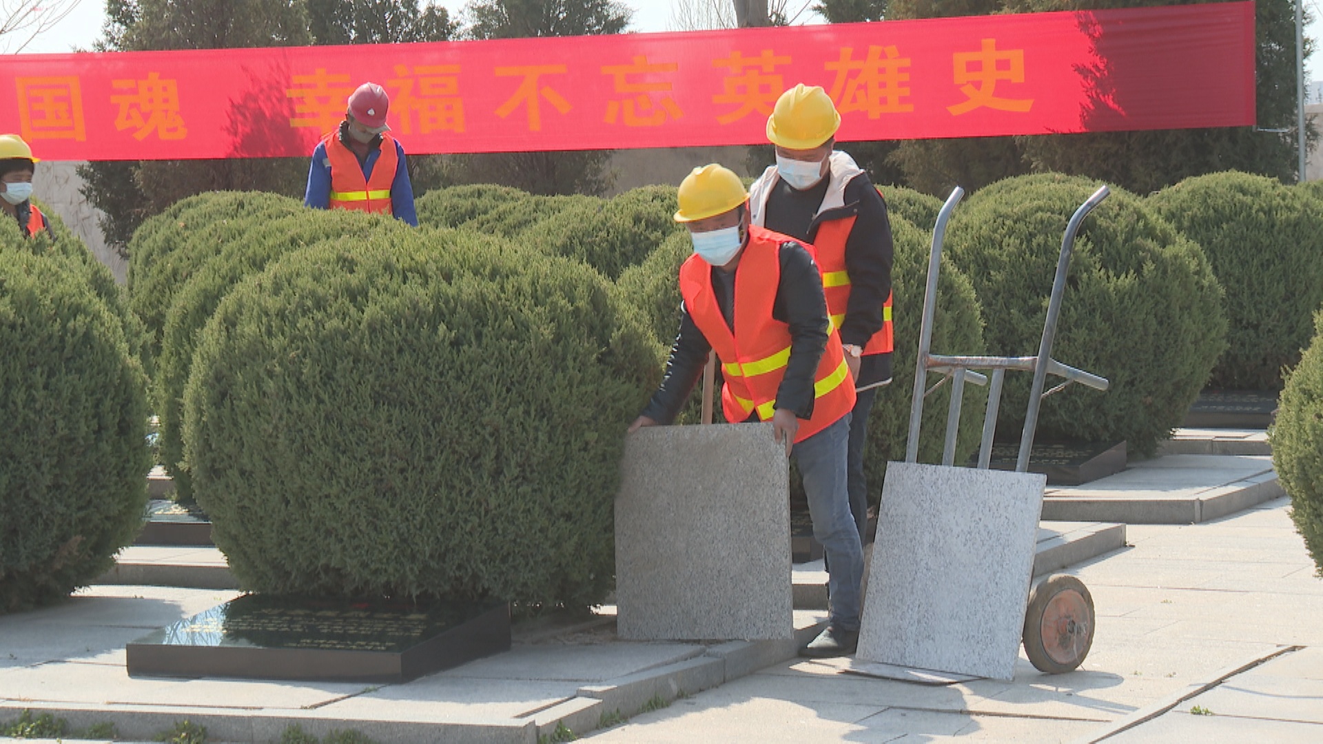 天津北方网讯:青松翠柏,缅怀英烈。清明将至,在天津市武清区烈士陵园内,工作人员正对园区纪念碑周边地面进行修缮,维护修缮工作将于近期全部完成。