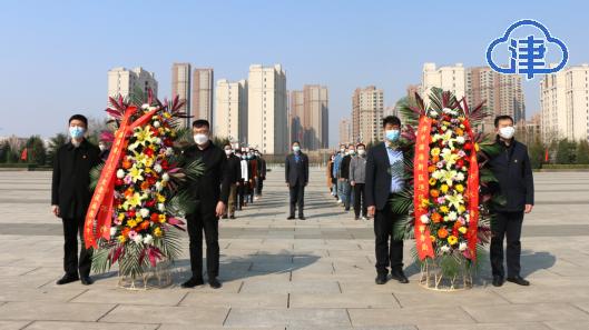 武清区烈士陵园内苍松掩映,在庄严肃穆的氛围中,全体代祭扫人员站在烈士纪念碑前,静默哀思,沉痛悼念为国捐躯的烈士和所有为中华民族解放事业做出贡献的革命先辈,表达对先烈的无比敬仰和缅怀之情。