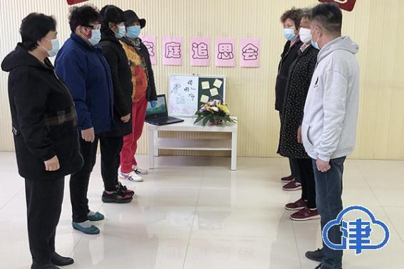 在庄重肃穆的氛围中,社区工作人员打开电脑,播放着天津市民政局官网上的“家庭追思会清明版”视频,按照视频提示引导,一家人依次送上了鲜花并鞠躬致意。“春暖花开了,我们来看您了!”陈永刚的家人们纷纷在便签上写下了缅怀亲人的文字,然后粘贴到黑板上,默默将祝福送给逝去的先人。