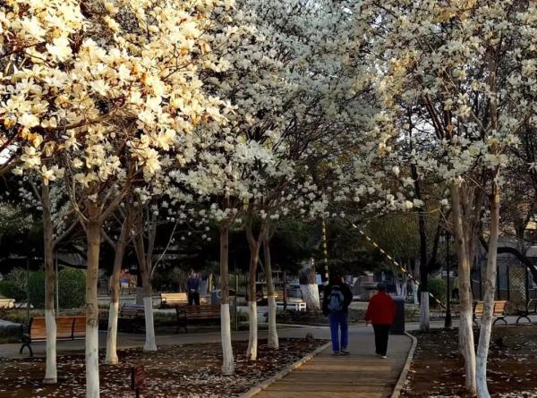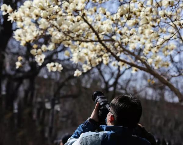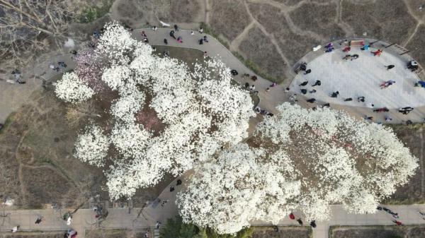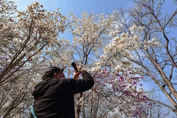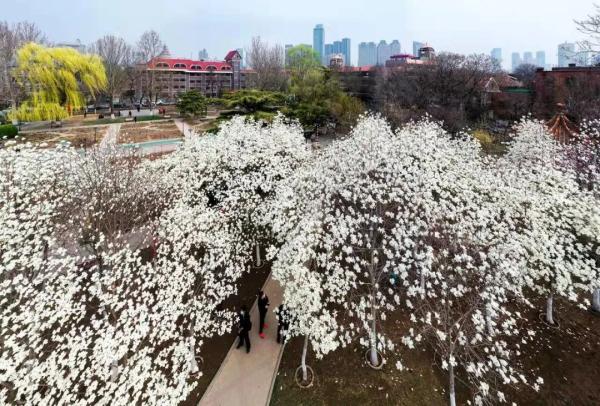 睦南公园内的数十棵玉兰花竞相开放