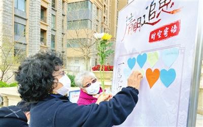 天津北方网讯:北辰区瑞景街江南春色社区组织开展“鲜花寄哀思 诗词话清明”清明节户外主题活动,社区工作者与居民用诗词和鲜花遥寄哀思,表达对逝去亲人的思念。(津云新闻编辑孙畅)