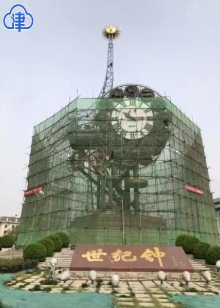 天津北方网讯:不久之前,作为本市标志性建筑之一的世纪钟悄悄地蒙上了一层“面纱”,在这些绿色安全网组成的“面纱”后面是忙碌的施工现场,工人们正有序地对大钟进行施工作业。这是自河东区城管委全面接管世纪钟及附属设施的日常维护管理工作以来,世纪钟迎来的第一次大修。