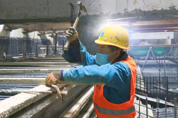 天津地铁7号线肿瘤医院站是天津市首个地下负四层三线换乘车站,基坑深度达36.8米,相当于一座12层的高楼,也被称为天津在建最深地铁站。“五一”期间,肿瘤医院站抢抓工期,一刻不停工,为早日实现全线洞通全力以赴。