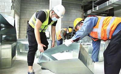 中建三局总承包安装公司华北经理部近千名建设者坚守在中医药大学第二附属医院中医药传承创新工程建设现场。本报记者 张磊 摄