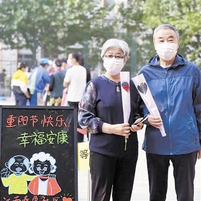 在国庆、重阳双节到来之际,江南春色社区工作者们开展关怀慰问活动,为60岁以上的老年人赠送鲜花,以一支支鲜花表达社区对老年人的关心、关爱。 (北辰区瑞景街供图)