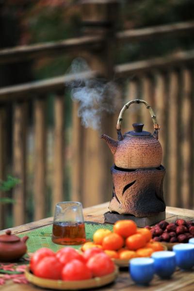 在福建省武夷山市,人们围炉煮茶。新华社发(陈颖摄)