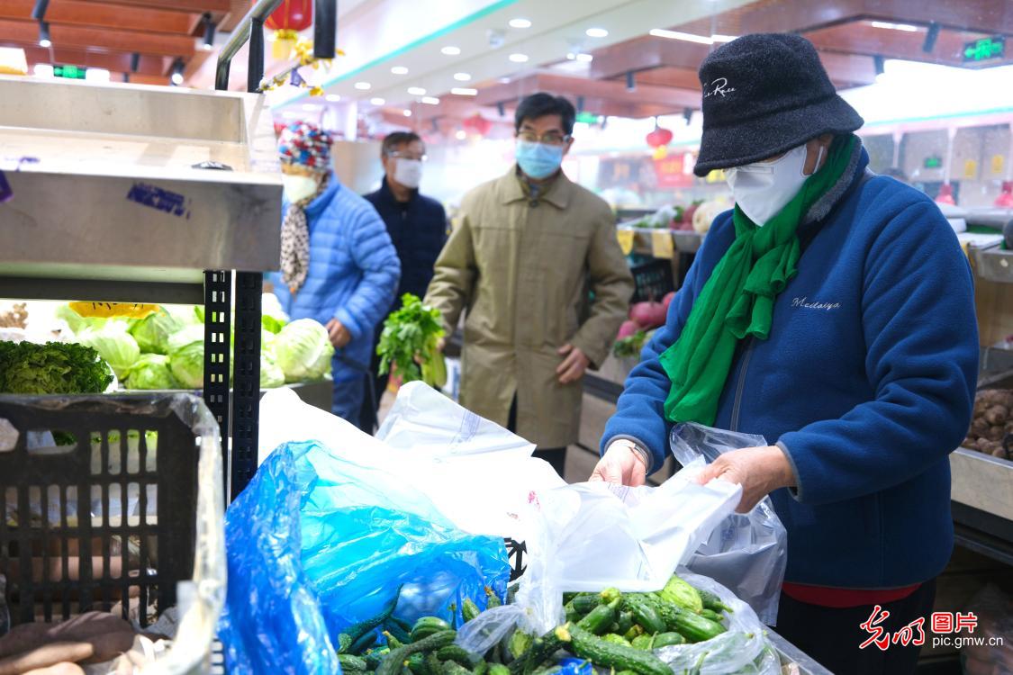 11月27日,北京市民在海淀区牡丹园一家超市购买蔬菜等生活日用品。(光明日报记者郭俊锋摄/光明图片)
