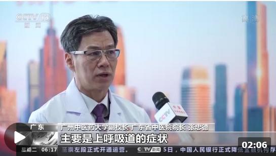 广州中医药大学副校长、广东省中医院院长 张忠德:有一些患者是有症状的,我们采集了这些患者的症候特征,发现主要是发烧、头痛、喉咙痛、干咳,有些患者会出现全身痛和腹泻的症状,但是这些症状非常少。