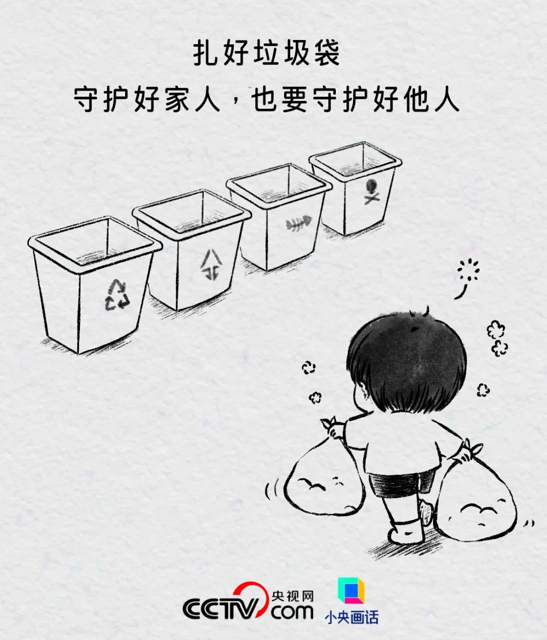 丢垃圾时绑好袋子、做好消杀,因为垃圾清运人员多为老人,病毒更能“欺负”他们!