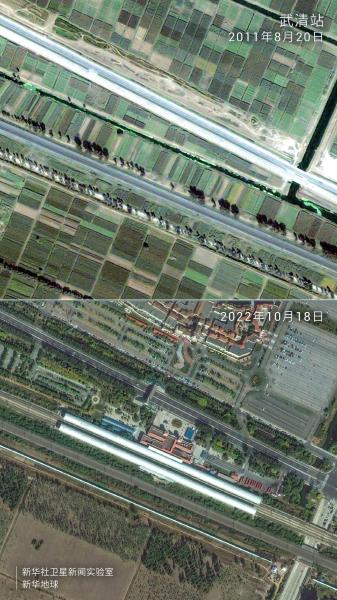图为卫星拍摄的武清站前后对比图。