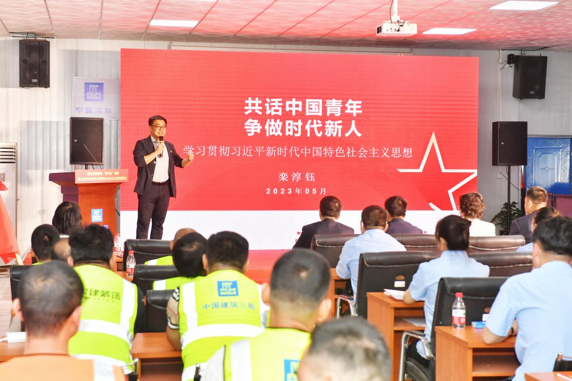 “我们要始终锤炼过硬本领,磨砺增长才干,做有骨气、有志气、有底气的青年人。”青年项目经理丁道贺分享了他对习近平新时代中国特色社会主义思想的理解与体悟。青春的激情,关爱的力量。青年志愿者岳娆,连续5年组织义务献血、小候鸟夏令营、乡村振兴直播等志愿服务活动20余项,“在我的青春路上,五彩的志愿色汇聚成了最美好、最绚丽的时光。”杨亦轩是新入职的青年员工,他在宣讲中提出,“习近平总书记对我们广大青年奋进新征程提出目标要求,我们要在建功岗位中明确前行方向,让中国听见我们的声音,让世界看到我们的风潮。”宝坻项目外来务工党员陈伟也分享了他的心得体会,“青春之美在于奋进,看到了党和国家的鲜明导向,我将继续在建筑行业发光发热。”四名青年人用真挚的语言讲述了学习贯彻习近平新时代中国特色社会主义思想感悟,以及立足岗位、建功立业的励志故事。