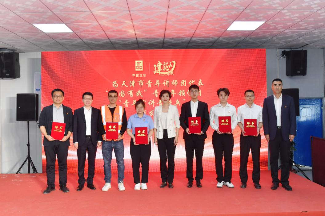 在为天津市青年讲师团、“强国有我”青少年领学团、“青年宣讲轻骑兵”颁发聘书后,宣讲会接近尾声。宣讲期间,与会领导为中建三局北京公司天津分公司“青马工程”工作室揭牌,并与项目一线青年员工座谈交流,了解青年思想状况、“急难愁盼”问题,并达成合作共建意向。