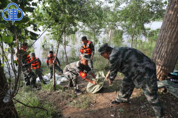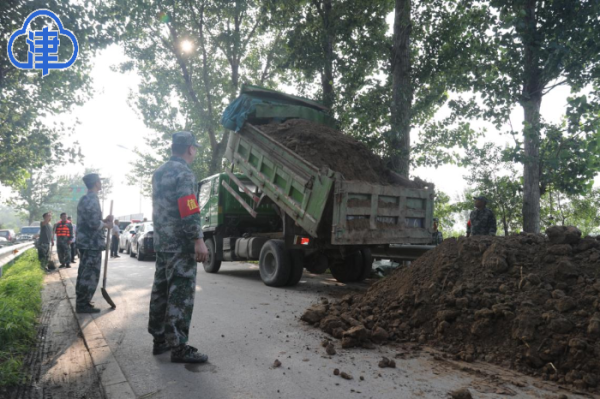 为了填补深坑,防止水位上涨冲塌堤坝,武清区水务局紧急调来26立方米沙土,现场20名民兵分工明确,装袋、搬运、填补,为人民群众重新筑起了生命财产防线,排除了险情。记者了解到,武清区各镇民兵在平日对于堤坝的维护和抢险都有针对性训练,每日还保证有一个近200人的应急连和10个街镇近300人的应急队伍24小时待命,确保遇到紧急情况立刻前往现场进行抢险救灾工作。