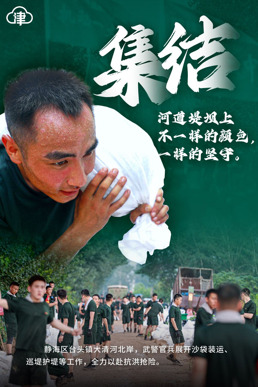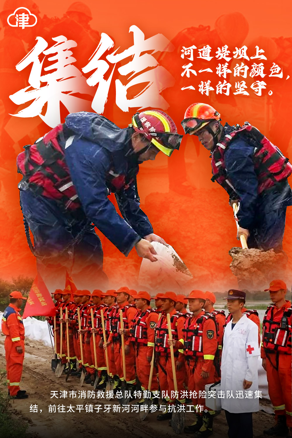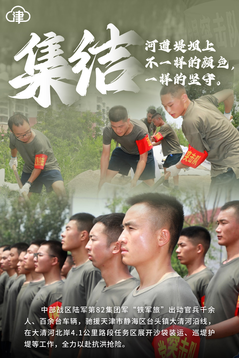 内容提要:集结!河道堤坝上不一样的颜色,一样的坚守