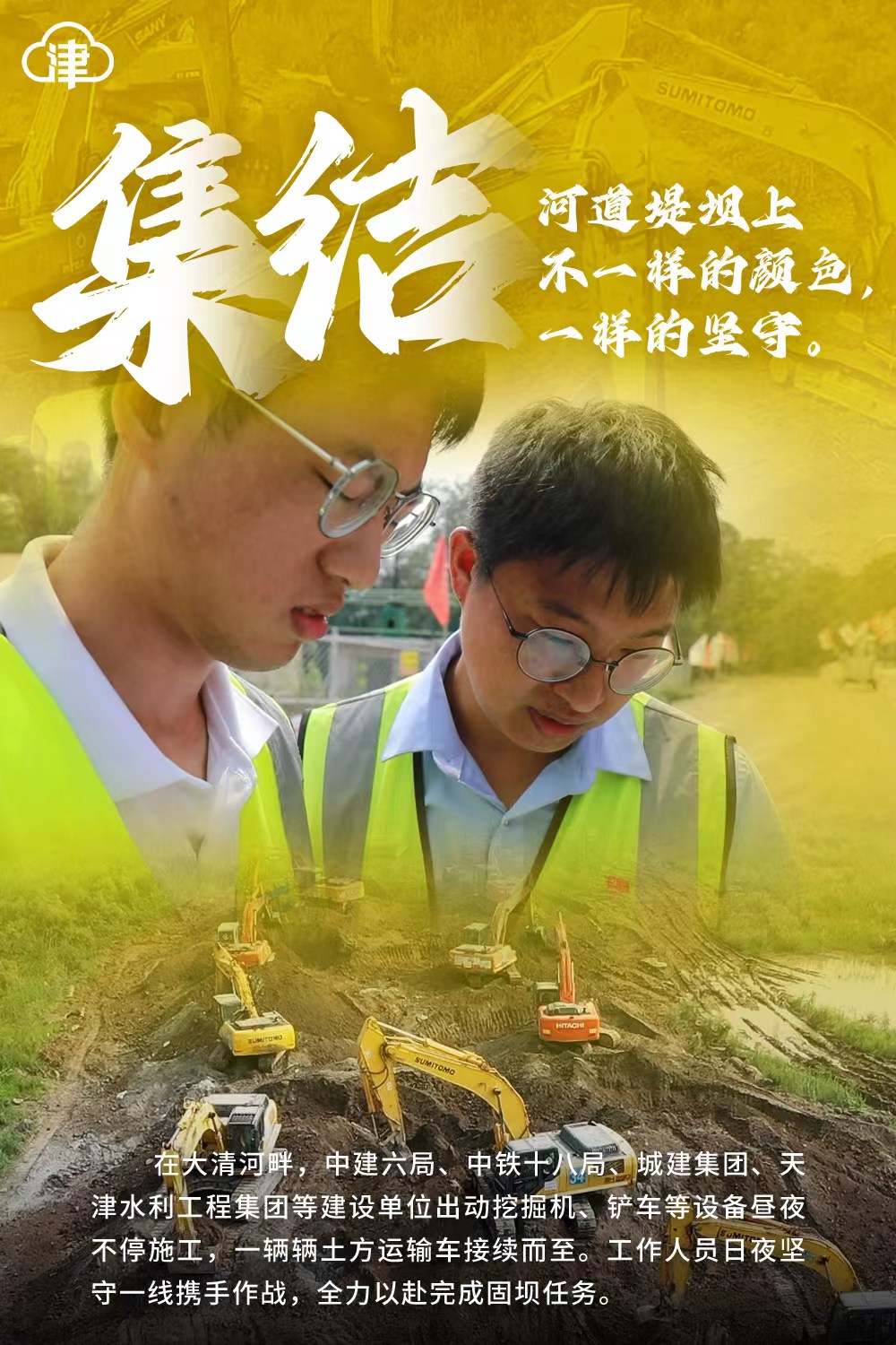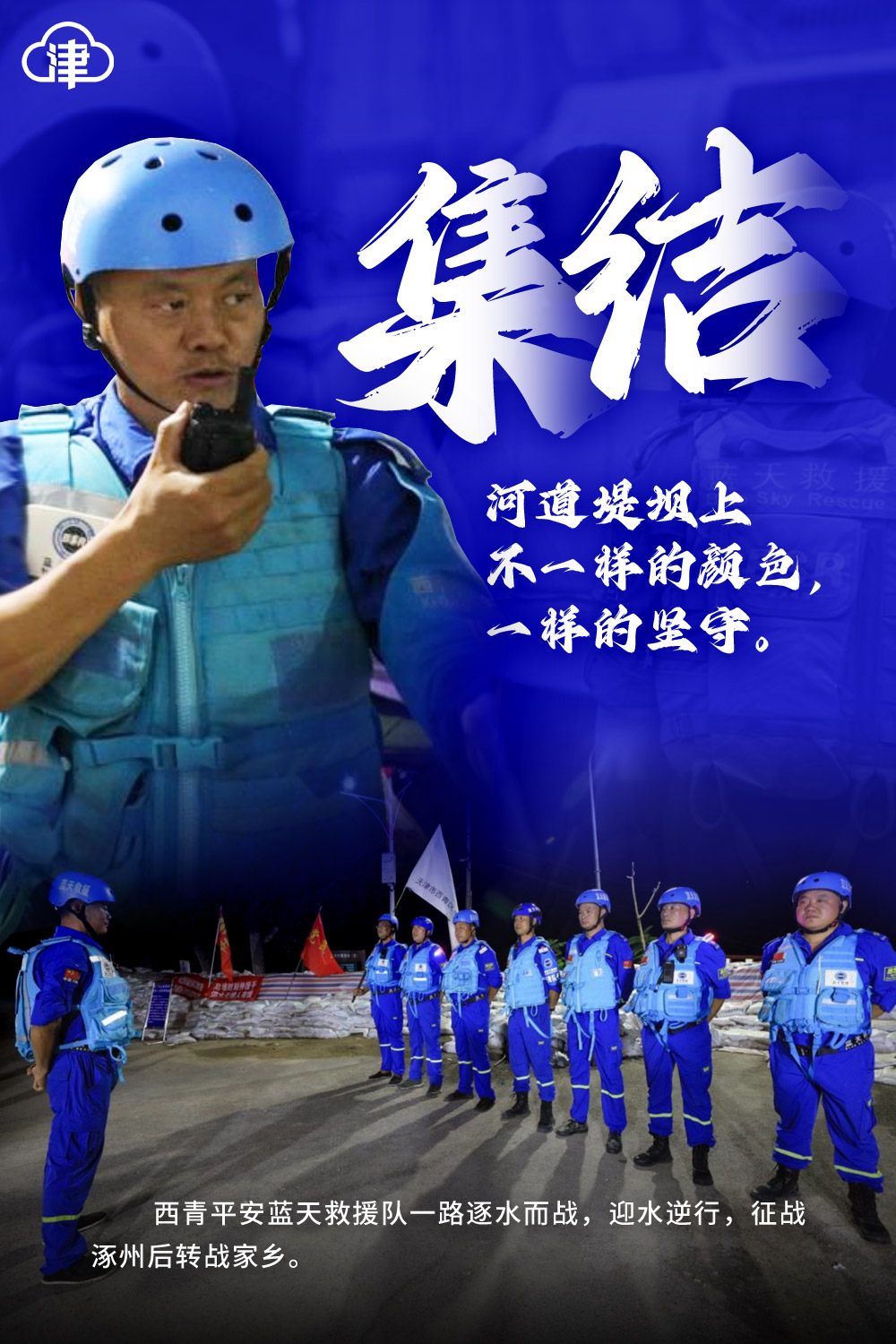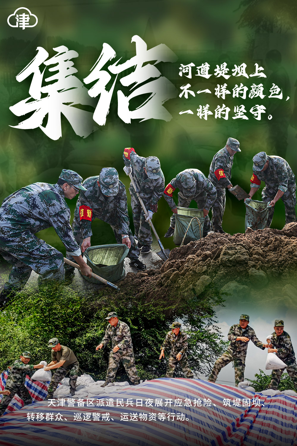 内容提要:集结!河道堤坝上不一样的颜色,一样的坚守