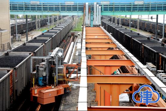 翻车机房内排放着一列列运煤火车,每4节车厢为一循环,随着翻车机的旋转翻转至160度左右,320吨煤炭瞬间被卸入底层漏斗,这里看不到煤尘升腾。整个过程一气呵成,仅约20秒,一列车翻卸完成,翻车机房依然如初,该技术被命名为本质长效抑尘技术。