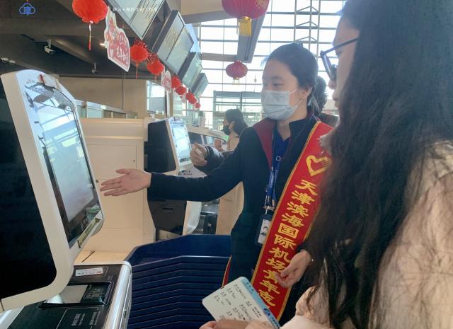 “这是打印好的登机牌,请您拿好,如需托运行李,请点击屏幕中按钮,选择行李类型,根据图示拴挂好行李条,放到履带上并领取打印凭证。”当前正值春运,上午9点刚过,天津滨海机场国内出发大厅内,旅客已经多了起来,不少值机柜台前都排起了队。全自助柜台前,身披红色绶带的客运服务部工作人员米佳正忙着指导旅客进行自助值机和自助行李托运。“春运期间,机场客流量逐渐增加,全自助柜台从办理登机牌到行李托运,全程大约只需要1分钟,大大减少了旅客排队等候的时间,提升了办理速度与效率。”米佳说。记者在现场看到,无论是值机托运,还是安检登机,各区域工作人员都热情服务着过往旅客。旅客史女士正准备带孩子前往东北打卡“冰雪游”,她告诉记者:“多亏工作人员及时提示,我们才知道,登山杖、防滑鞋原来是不可以随身带上飞机的,所以赶紧来办理行李托运。没想到机场还针对热门航线旅客做出这么温馨的提示,实在是太细心了!”
