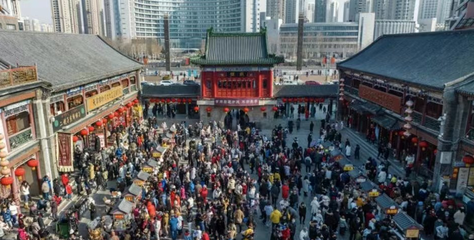 天津北方网讯:2月10日是农历大年初一,沐浴在暖阳里的天津不论是大街小巷都充满了喜气洋洋的节日气氛。街头鲜艳的国旗、福字、中国结、红灯笼,点燃了津城百姓红红火火的日子,随处可见的中国龙造型充满了浓浓的中国味,抖擞起了新一年的精气神儿。