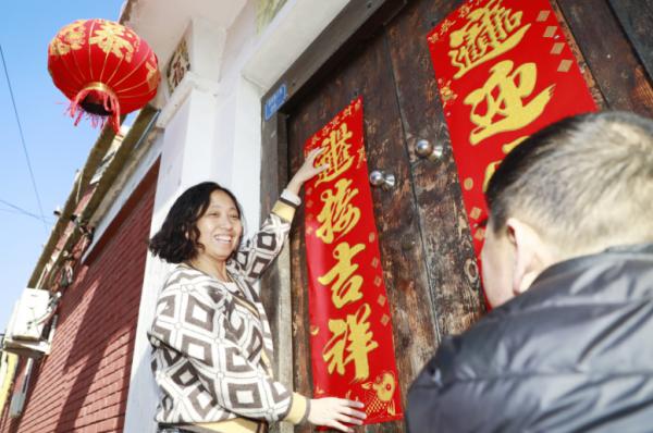 每家每户门口挂着的红灯笼、阳光照耀下红彤彤的春联、临街树干上的小彩灯……一进入西青区辛口镇的第六埠村,年味儿扑面而来,到处洋溢着新年的欢庆气氛。