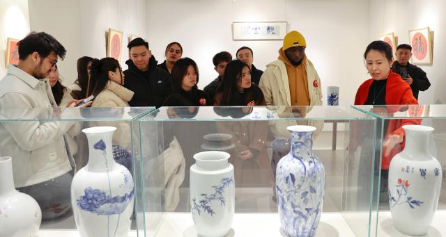 作为津南区“津彩南望,龘龘贺春”千场活动之一,近日,天津市非物质文化遗产项目“陈氏制瓷(手绘)制作技艺”的传承保护单位——观照轩,举办了“打卡非遗·津彩南望”暨观照轩敬龙祈福展览活动,邀请市、区书画名家和外国留学生共同品味中华传统文化,寻觅年俗中的浓浓春意。