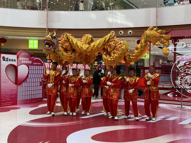 大年初一上午十一点,记者来到位于咸水沽镇的吾悦广场,迎面而来的就是购销两旺的热闹场景。为了增添年味儿,商场不仅围绕龙年主题进行了精心布景,更是推出了新春好物市集,手工编织、非遗好物纷纷亮相,吸引了众多市民驻足挑选。伴随着欢快的鼓点,秧歌、高跷、舞龙舞狮等民俗表演也走进了商场,现场热闹而喜庆。