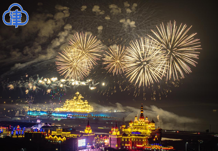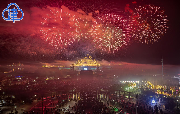 从正月初二至初七,春节特别版航母焰火秀连续璀璨绽放,各色礼花礼炮联动齐发、光影动人,闪耀航母夜空,同时搭配近千架无人机同步升空,绘制出新春主题图案,为龙年新春的津城开启绝美新年盛宴。