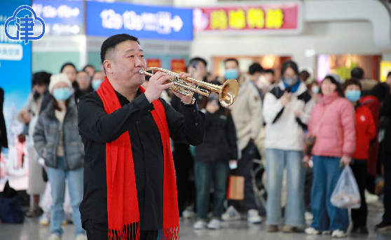 2月15日,农历大年初六,来自天津交响乐团铜管五重奏的艺术家们,先后前往天津站和天津滨海国际机场。用精湛的技艺为全国各地的游客们送去了《我和我的祖国》《游击队之歌》《敢问路在何方》《茉莉花》《我爱你中国》等十余首经典名曲,受到市民和旅客们的欢迎。