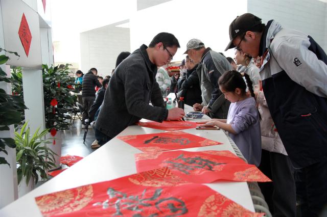 天津北方网讯:随着天津图书馆“图书馆里过大年”春节系列活动的持续开展,“於此乾乾”新春展会也持续升温。为营造更加浓厚的新春氛围,2月15日(正月初六),天津工艺美术职业学院师生在天津图书馆文化中心馆区一楼现场挥毫,创作书画赠送读者,在浓浓墨香中陪伴大家共度活力满满、热气腾腾的龙年新春。