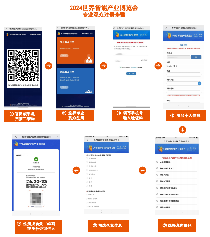 报名注册:请收到本邀请函后,于6月19日24:00前注册专业观众,报名方式可通过手机扫描下方二维码或登录大会官方网站(www.wicongress.org.cn)点击“注册参会”,选择“专业观众报名”后进行注册。