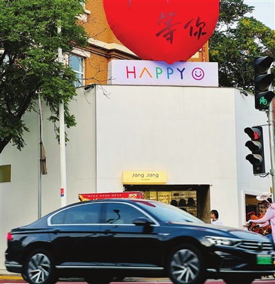 记者注意到,位于赤峰道与新华路交口的一家外墙全为白色的饰品店,凭借在屋顶挂上印有“天津等你”四个大字的“心形”红色气球,成为年轻游客的热门“打卡”地之一。