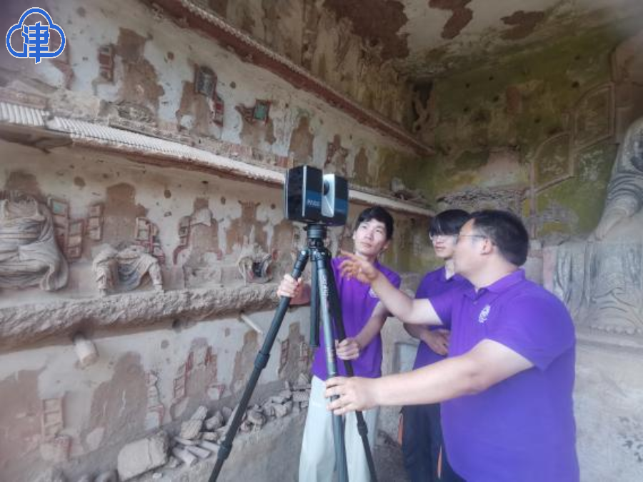 实践团成员使用激光扫描设备记录石窟和文物点云数据