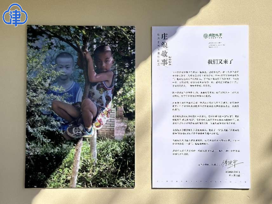 天津北方网讯:在甘肃省平凉市庄浪县陈堡洋芋艺术影像馆,2023年展出的大照片面前的小树长高了,几乎遮住照片上的陈皓轩。今年8岁的陈皓轩也长高了,他爷爷在村里置办了网红秋千,5元玩一次,不限时间。摄影师今年给他又拍了一张照片,陈皓轩抱在小树上,和自己一年前的照片合了张影,这张照片成为2024庄浪故事在地艺术影像展的第一张照片。时间过去了,故事还在。