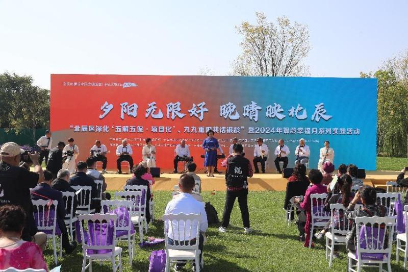 10月11日,正值传统佳节“重阳节”,北辰区韩家墅婚礼主题公园内热闹非凡,一场充满温情的“五解五促·项目化”、九九重阳共话银龄暨2024年银龄幸福月系列实践活动在这里精彩呈现。