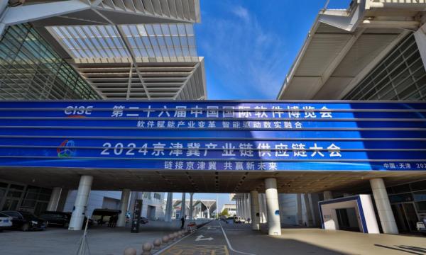 在S9展厅,第二十六届中国国际软件博览会的成果展正式亮相,知名软件企业的最新产品悉数登场。而它对面的S16展厅,则是“2024京津冀产业链供应链大会”主会场。