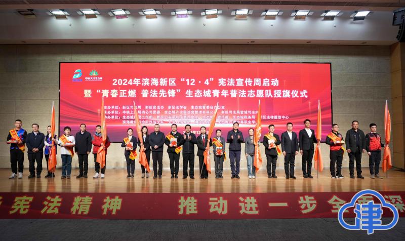 今年12月4日是第十一个国家宪法日,12月1日至7日是第七个“宪法宣传周”。昨天(12月2日),由滨海新区司法局、滨海新区普法办、滨海新区法学会、中新天津生态城管委会办公室联合主办,中铁上海局四公司、生态城产业园运营管理有限公司、滨海新区司法局营城司法所联合承办的滨海新区“12·4”宪法宣传周启动暨“青春正燃 普法先锋”生态城青年普法志愿队授旗仪式正式举办,此次活动也拉开了2024年滨海新区“宪法宣传周”活动的序幕。