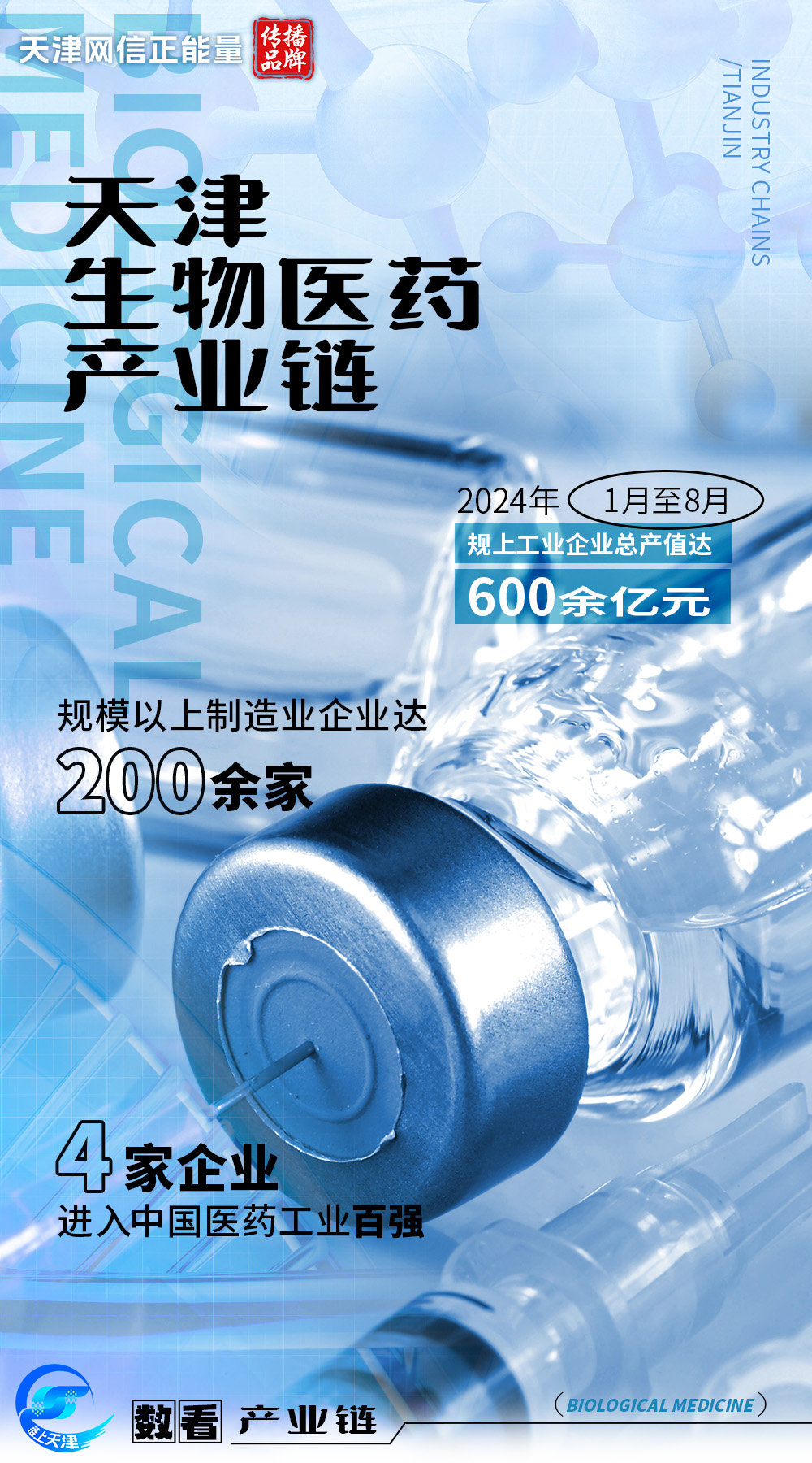 抓好生物医药产业重点项目、支持生物医药载体和园区建设、布局生物医药产业新赛道……天津聚集起生物医药企业超千家,规模以上工业企业达220余家,诺和诺德、医药集团、天士力集团、红日药业4家企业进入中国医药工业百强,同时拥有主板上市公司11家,市级专精特新企业138家,国家级专精特新小巨人企业22家,市级单项冠军企业14家。京津冀生命健康先进制造业集群成为首个入选“国家队”名单的先进制造业集群。2024年1月至11月,天津生物医药产业规上工业企业营业收入总规模达880余亿元,预计到2025年,我市生物医药产业规上工业企业营业收入总规模超千亿元。(津云新闻记者/郭维 设计/陈楚)