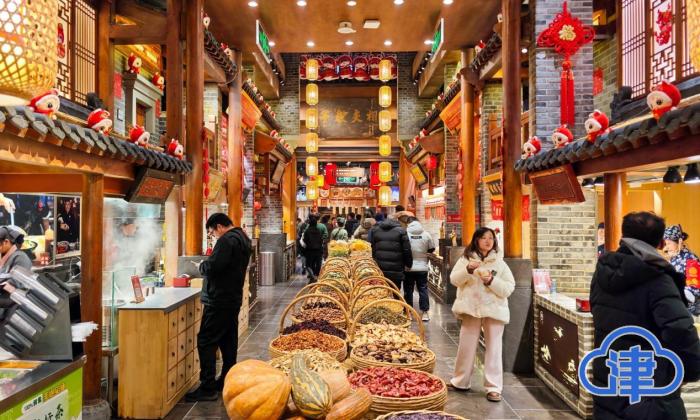 天津北方网讯:1月6日晚,“瓣瓣同心京津冀 欢欢喜喜过大年”主题宣传联合采访活动走进河北省唐山市,第一站就来到了“能吃的博物馆”——唐山宴。这座饮食文化博物馆不仅美食荟萃,还有民俗展示、非遗体验,和各种文化展演,同时还是随手出片的网红打卡地,堪称唐山的文化地标。