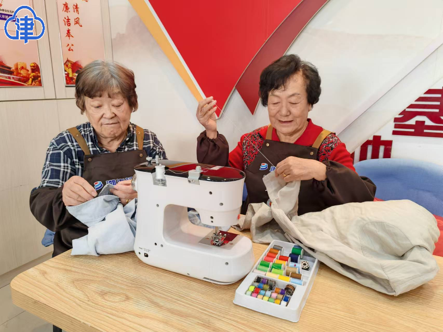 胡文越和娄茂珍两位阿姨是缝补组的成员,她们都是在老伴儿的感召下加入了志愿服务队。记者看到,缝纫机前,她们拿起需要扦裤腿的衣服,眯起双眼,娴熟地穿针引线,最后在缝纫机上进行锁边。胡阿姨笑着说,她白天有时会出去锻炼,为了不耽误干活,就晚上“加班”。月明当空,窗前一盏灯,弥散着浓浓温情,记者脑海中瞬间出现了这幅温馨画面。
