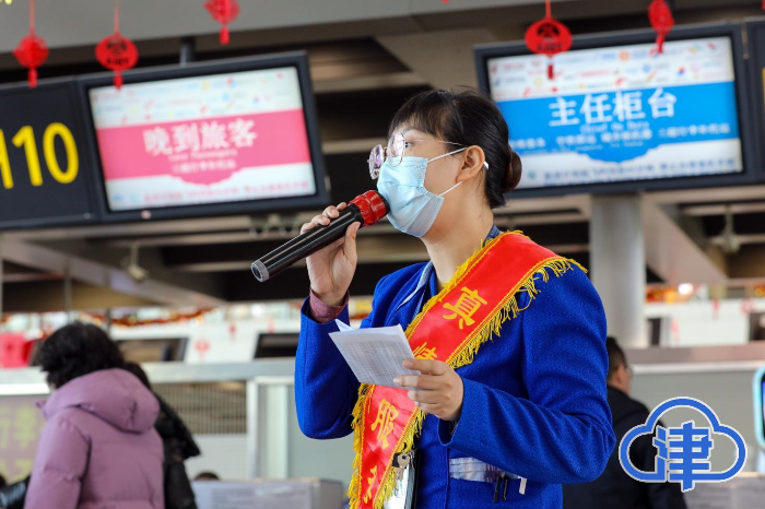 上午9时,天津滨海机场2号航站楼的到达层熙熙攘攘、人头攒动。谭昶手持话筒,她的声音清晰而洪亮:“排队的旅客请您注意,如果您同行旅客中有12岁以下儿童,可以前往H10号晚到柜台办理;没有行李托运,只需要打印登机牌的旅客,也可以前往十号柜台排队办理……”这看似简单平常的话语,却是她每日工作的重要开场。