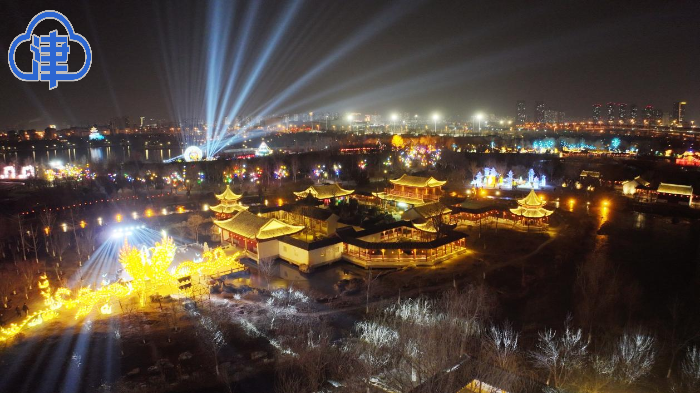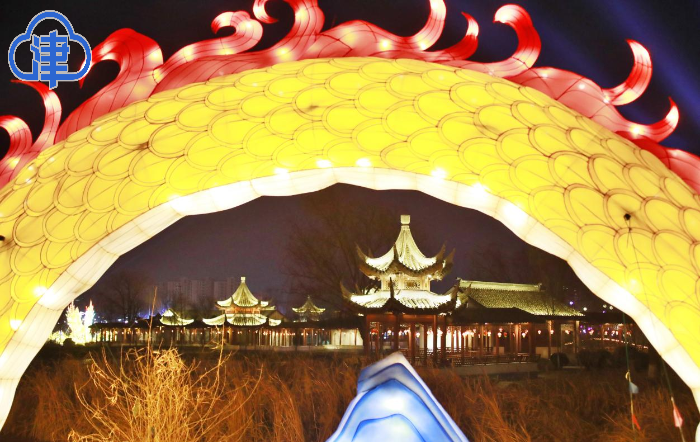 第二届津彩大灯会地址定在水西公园,占地面积2万平米,场内共有八大主题32组精彩灯组,流光溢彩、巧夺天工。在万人点灯仪式上,在山海女神主舞台区域,高跷财神、神女掌灯、仙尊赐福……灯影蹁跹,精彩的灯会让游客尽收眼底。