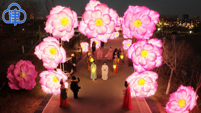 天津北方网讯:华灯初上,彩光映照。1月22日18时,“瓣瓣同心京津冀,欢欢喜喜过大年”2025重点迎新春系列活动,第二届天津水西公园津彩大灯会盛大开启。