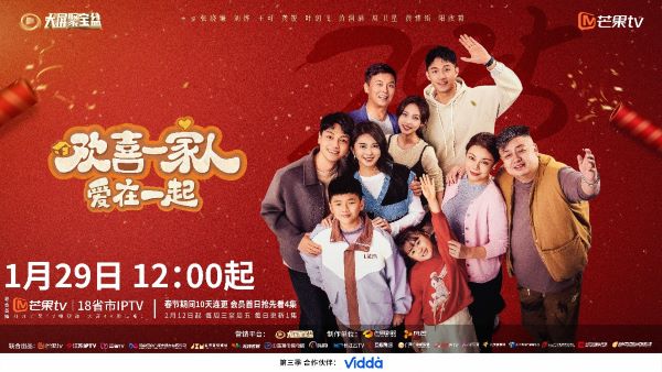 内容提要:1月23日,由大屏聚宝盆“众投计划”推出的微短剧《欢喜一家人·爱在一起》官宣定档大年初一(1月29日)回归屏幕,春节10天连更,每日中午12:00天津IPTV、芒果TV等18家省级IPTV联合首播,2月12日起,每周三至周五中午12:00播出。
