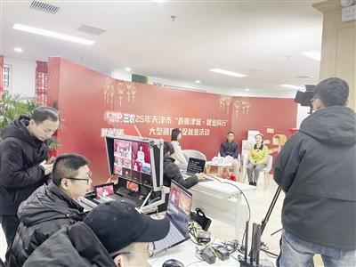 在创业对接活动区,创业孵化基地集中进行宣传服务对接,相关金融服务机构为有贷款需求的企业提供政策咨询、现场答疑解惑。直播带岗专区则在室内现场搭建起了直播矩阵开展直播带岗,主播线上发布就业岗位和政策咨询,同时带领广大求职者“云”逛会,求职者通过抖音平台直播间就能线上投递简历。直播以政府服务+媒体宣传的形式,助力农民工等重点群体的高质量充分就业。在劳务品牌展示区,“小站稻种植师”“杨柳青年画师”“七里海河蟹面制作师”“骆驼房子烧鸡制作师”等8家具有天津特色劳务品牌在专区进行现场展示。非遗“盘扣”被嵌入画框之中,犹如一幅画作,氤氲着含蓄和典雅。一位前来找工作的女士说,她平时喜欢做手工,随着人们对中式服装的喜爱,盘扣手工技艺也一定会有就业空间。