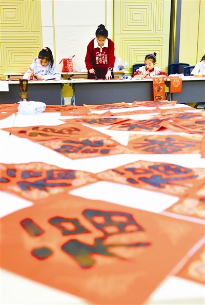 天津北方网讯:日前,红桥区芥园街道党工委联合天津市民族文化宫、红桥区文学艺术界联合会共同开展“万福迎春 文化进万家”活动,邀请红桥区书法家、书法爱好者共同现场提笔,并邀请孩子们亲手体验书写,在红纸上写下对新年的美好期许,将新年祝福送到千家万户。(津云新闻编辑王舒瑶)