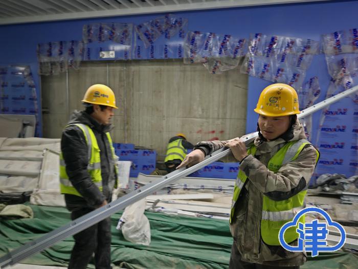 4号线北段工程全线春节期间坚守岗位的建设者将近200人,其中管理人员约70人,工人约95人。为应对近期可能出现的寒冷天气,北洋桥站内已配置了热风炮,出入口挂上了保温帘子,还为工人配备了劳保保暖大衣和劳保鞋。范蒙表示:“因为目前主要进行装修铝板施工,受温度限制相对较小,土建中需养护的混凝土作业已基本完成,所以天气对我们当前施工的影响不大。”当下,北洋桥站主体结构已经完成,正朝着单位工程验收节点全力冲刺,届时站厅站台的装修基本要完成,这也标志着工程基本具备验收条件。