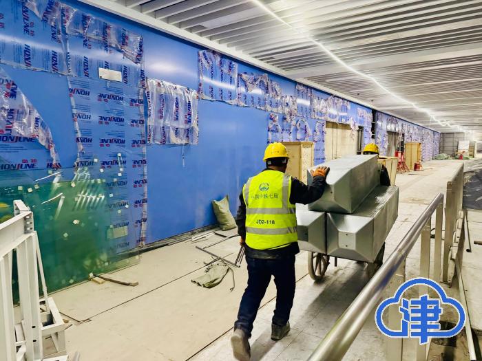 走进天津地铁4号线北洋桥站施工现场,机器的轰鸣声奏响了新春的奋斗乐章。中铁(天津)轨道交通投资建设有限公司建设管理部的焦润东在现场忙碌穿梭,他介绍说:“目前工程整体处于全力建设和重点推进的关键时期。春节期间,我们把主要精力放在北洋桥站的设备安装和装修装饰施工上,并且是连续施工。因为要确保2025年实现4号线北段工程开通的目标,而北洋桥站剩余工程任务较重,所以必须抓住春节假期,把整体进度往前赶。”