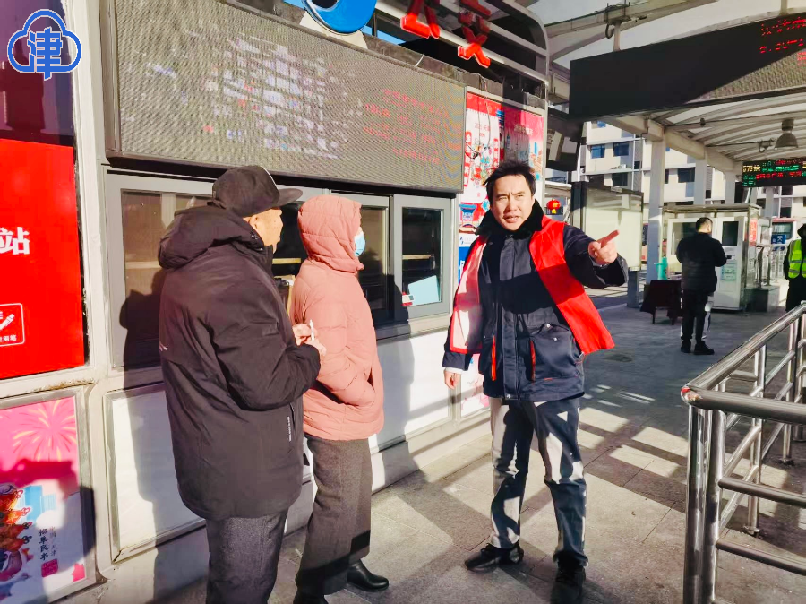 正当赵二军不停地忙碌时,突然有一位女士来到他身旁焦急地求助:“师傅,我本来要去天津西站坐火车回老家,但是由于着急上错了公交车到了天津站,我该怎么办啊?”得知这一情况,赵二军急忙放下手中工作回答道:“您要是时间充足的话,可以从这乘坐24路、824路或者635路公交车直接到达西站公交站了;您也可以乘坐地铁2号线在西南角站换成地铁1号线到达西站;如果您时间比较紧。那就直接打出租车过去。”最终,这位女士选择乘坐公交前往西站。赵二军便亲自将其送到所要乘坐的公交线路站台后才返回自己的工作岗位。他细致、周到、耐心的服务也得到这位外地乘客的再三感谢。